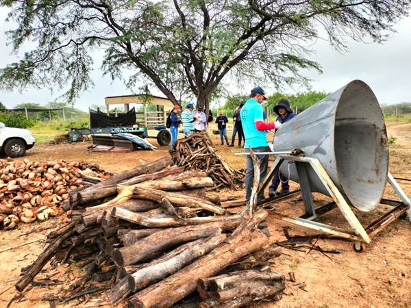 Produção artesanal de Biocarvão a partir de casca de coco e da madeira da algaroba para reflorestar a Caatinga